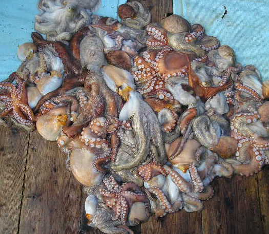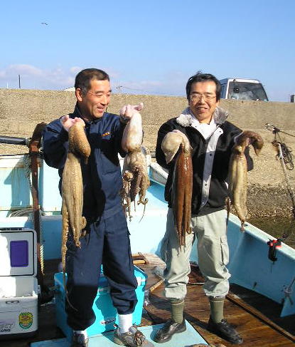 | 平成17年 1月18日 火曜日 場所・・・・・伊良湖沖(水深30cm〜55cm) 釣り人・・・・ マダコ・・・・0.5kg〜3.5kg・・・・・24ハイ えさ・・・・・アナゴ 流し釣り ka-1tuki |
