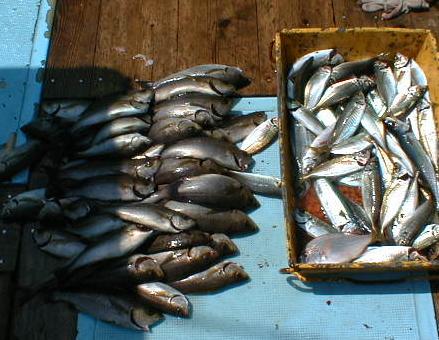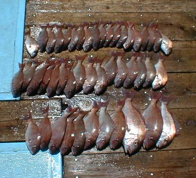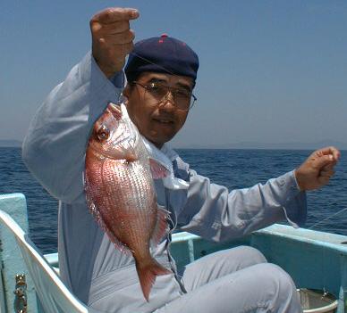 7月22日 土曜日 晴れ 場 所 場所(水深24m) マダイ 22cm〜36cm 46匹 え さ ウタセエビ 流し釣り |