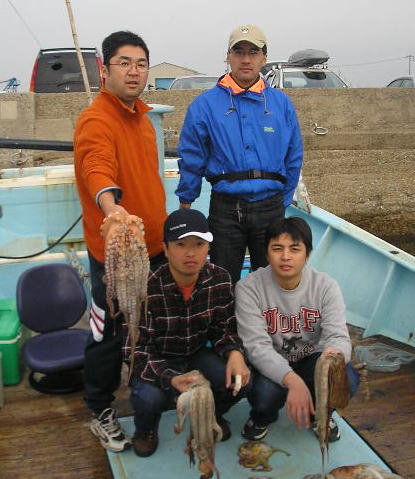 | 平成16年 12月19日 日曜日 場所・・・・・伊良湖沖 釣り人・・・・名古屋市の高畑さん マダコ・・・・0.5kg〜3kg・・・・・27杯 えさ・・・・・アナゴ 流し釣り ka-12tuki |