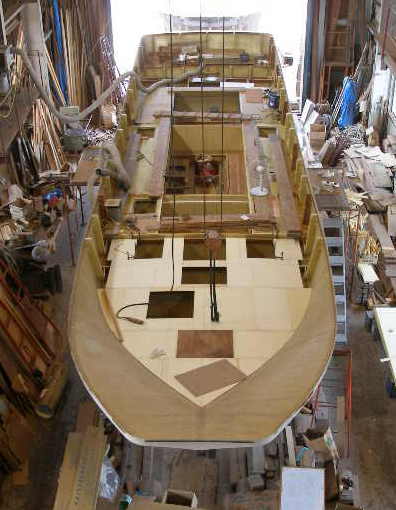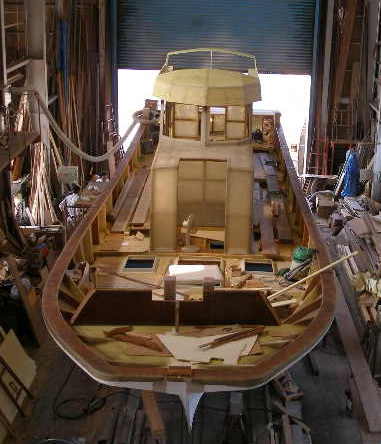 | 9月25日 操舵室、客室出来上がり、船らしくなりま、した 10月2日の進水式予定です |