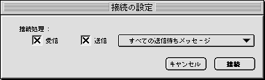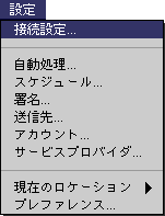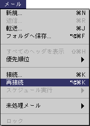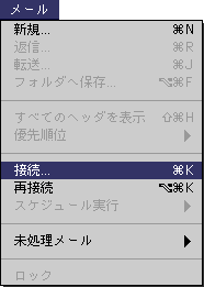 □(ネットワークに接続した状態で)「メール」メニューから「接続...」を選択します。 (または、ツールバーの「接続」ボタン ![]() ![]() ![]() |