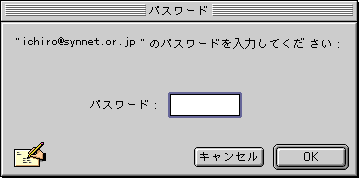 □(ネットワークに接続した状態で)「ファイル」メニューから「メールの確認」を選択すると、パスワード入力のダイアログが現れますので、パスワードを入力します。