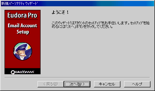 □初めて起動すると、「新規パーソナリティウィザード」が始まります。![]() 「次へ(N)>」ボタンをクリックします。 |