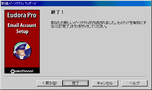 □「終了!」のダイアログが表示されます。![]() 「完了」ボタンをクリックし、パーソナリティの作成を終了します。 |