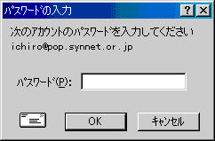 ![]() パスワードを入力し、「OK」ボタンをクリックすると受信用メールサーバ(POPサーバ)から新着メールを読み込みます。 |