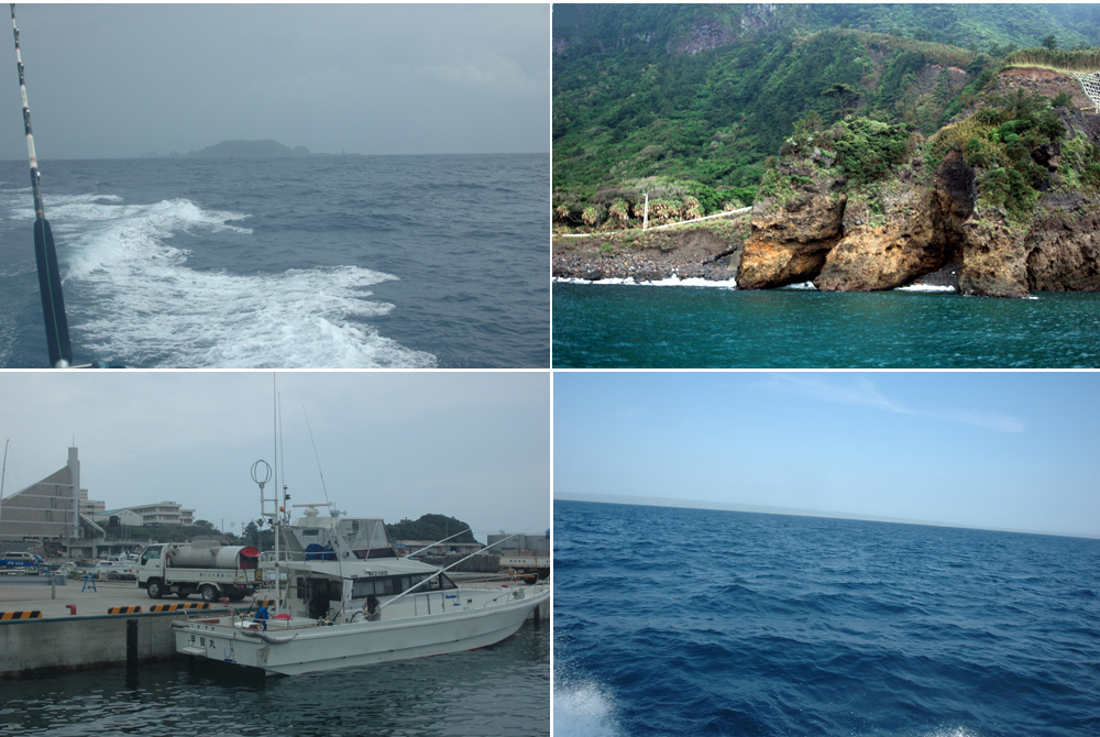 ![]() | 朝5時に宝島を出発。あきらめかけていたGPSが見事に復帰してくれたので位置情報は確実に取れるようになった・・・・やれやれ。 宝島を出発して30分で小宝島を通り過ぎる(左上)、お腹の大きな女性があお向きに寝ているように見えるのでこの名前が付いたんだそうです。それからもう1時間ほど走ると悪石島に到着(右上)。港に入って島を見上げてみると天然温泉らしき湯気が吹き上がったところがあったり、海から山がそそり立っていて、なんせ名前が悪石島ということもあって迫力に圧倒される。港には波が入り込み状態が悪い、上陸は諦めてトローリングをすることに決定。諏訪之瀬島に近ずくと鳥山、さっそく仕掛けをいれる。すぐにバカでかいカツオが次々にヒットする。少し大きめのルアーを流していたリールにもヒット、ラインの出方からかなりの大物のようだ。暫くスタンドアップでやりとりしていたがラインブレーク。しばらく楽しんでいたがそろそろ帰りの燃料が心配になってきたので屋久島に戻ることにした。 屋久島に到着したのが午後2時、さっそく燃料補給(左下)軽油が1000L入った。自分は屋久島に泊まるつもりでいたのに、T氏は出発するという。給油をしながらワインとカチカチになったフランスパンで食事をすませる、結局屋久島には1時間半いただけで出発することになってしまった。 夕方、種子島を通過(右下)。山が無く真っ平らな島、なるほどロケットの打ち上げ基地があるはずだ。日本のロケットはよく曲がるので山があってはならんのでしょう。 |