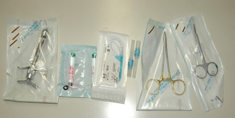 ![]() | 一昨年の宝島釣行は出がけにコンビ二で食料と水の購入をするなど極めて準備不足で出かけてしまいました.何もなかったからいいようなものの今考えるとちょっと恐い気がします。 今回は食料だけでなく、こんなものまで用意したのです、傷口を縫う道具です。 10年程前シイラの掛かった針が手のひらに刺さってしまったのです、魚が暴れてあまりの痛さに思いきり引っぱったら大きく傷口が開いてしまったのです、その時はバンドエードで傷口をふさいだのですが、仕掛けを上げる時にすぐバンドエードがはずれてしまい困ったことがあったのを思い出したからです。 しかし、どうも性格が極端だなあ〜・・・ここまですることはないか。 |