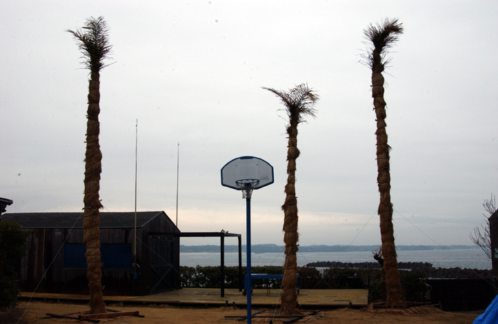 ![]() | 見て下さい、この寒そうな景色。海の家が冬をむかえています。昨年5月に植えたヤシの木が越冬できるのだろうかと心配していましたが、いよいよ正念場を迎えています。 太平洋岸に住んでいる人は大体南側に海が見えるので、海の見える側が南だと考えがちですが、私たちの海の家から今見えている景色が実は北側なのです、冬は北から冷たい風が吹いてきます。ヤシの木にとっては大変厳しい環境です。 昨年の12月に、葉はできるだけ刈り取り幹には藁を巻きました根の周りも藁をひき地中の根を保護するように対策しました。それから2ヶ月、今僅かに残っている葉っぱの先端はまっ茶になっていますが、中心部の葉はまだグリーンぽく残っています、「まだ大丈夫枯れていない」と自分に言い聞かせています。後1ヶ月、春よ来い!。 |