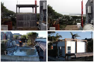 ![]() | 冷蔵コンテナの移動に先立って、今までの見晴し台を撤去しなければなりません。組み立てるのは大変でしたがバラスのは以外と簡単でした、助っ人と2人で3時間ほどで右上の写真のようになりました、はしごだけがポツンと残り何か滑稽な風景・・・・・。 しかし、大変だったのは基礎工事(左下)でした.まず20センチほど掘り下げる作業が大変でした。そして次は例のセメント打ち、今度は砂利もまぜたセメントなので以前のセメント撹拌機が使えない、困っていたら建材屋さんから「家にあるダルマ型撹拌機を貸してあげる」と願ってもない申し出がある。ダルマ型?(外がグルグル回っているミキサー車の超小型のものと思ってもらえばいい)を使用してやっとの思いでセメントを打ち終わったところが左下の写真です、これだけのことにまる二日かかってしまった。 そしてコンテナの移動がすんだところが右下の写真です、まだ柱しか立っていませんが これから壁をつけて上を新しい見晴し台にするつもりです。このところスキーシーズンで作業が中断していましたが、そろそろ気合いを入れねば!・・・・・・。 |