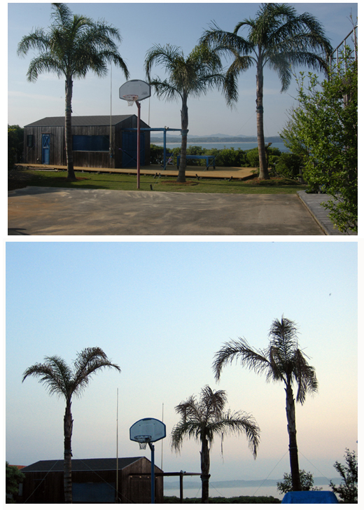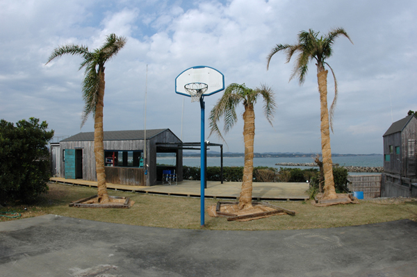 ![]() | 家の奥さんから年賀状用の写真を撮ってこいと言われて、11月27日に撮影したものです。一見暖かな風景に見えますが海からの風は冷たく暖房が無ければとても食堂には居られない状況です。逆光で撮ってあるのでヤシが元気そうに見えますが、植木屋は今年の冬が正念場だと言っています。今年に入ってからゲストの皆さんが「ね〜真ん中のヤシがちじんでいない?」と恐ろしいことを言いはじめたのです。 私は「他のヤシが伸びたからそう見えるの!」と強がリをいっていますが、たしかに・・・・嫌な予感。 植木屋に「木がちじむことってあるか?」と聞いてみたら「そら〜枯れる」と冷たい返事。 本格的な冬の前に防寒のための藁巻きを今度は自分でやるつもり、「へこたれるなよヤシの木!」 |