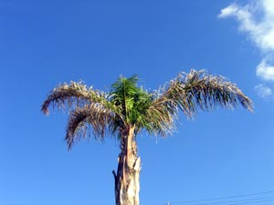 ![]() | 昨年は越冬には成功したものの、ご覧のように結局1年このように元気の出ないまま過ぎてしまいました。新しい葉が出てきても強い風でポキリとこのようにへこたれてしまう繰り返しでした。 「ヤシは風にも潮にも強いはず」でしょうとゲストに言われても、「・・・・ねえー」としか私には答えることしかできないのです。先日ある方からメールをいただきました「あのヤシさん志摩へ来て何かいいことあったのかな」だって、ほんと世の中性格きつい人いるよね〜。そうそうカジキ釣った時も「こんなに大きくなるまで頑張っていたのに、釣られちゃってえー」と言っていた人もいたな〜。 暖冬とはいえ、海から吹きつける北風は冷たくなってきました。昨日、高所恐怖の私は決死の覚悟で藁巻きに行ってきたのです。梯子を使っての作業でした、恐怖の余りヤシの木に必要以上抱きつきながら作業してきたので、スキンシップは充分得られたと思っています。 「頑張れよヤシの木!」 |