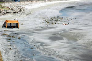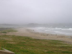 ![]() | 海の家から西側の海岸を見たところです、台風6号の影響で波が高くなりはじめています、波立った海面から霧状になった海水が右から左へと風で飛ばされているのが靄がかかったように見えているのです(写真をクリックすると拡大して見えます)。 海の家では何もかも錆びてしまったり、一晩で植木の葉が茶色になってしまうのも分かる気がします。 この国府海岸は結構サーファーには知られたところで、週末にはずいぶん人が集まります、そんなサーファーを時々冷やかしにいくのも楽しみの一つになっています。 この堤防ぞいの道はず〜と安乗の灯台(写真の右隅)まで続いており、大変気持ちのいいサイクリングロードになっています。 この道を、朝早く老年のライダーは時々ひょろけながらノーヘルで疾走するのです。 |