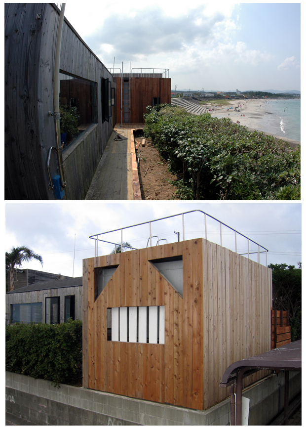![]() | 昨年の11月から延び延びになっていた見晴し台がやっと完成しました。このように食堂のデッキから歩いて登ることができます(上の写真)。だいたい皆さん酔っぱらっているので落ちない様にデッキを広げ、手すり付きの階段も取り付けました。ひょっとして上から落ちる人がいるといけないので上にも落下防止の手すりをつけました。自分で言うのもなんだが「中々の出来映え!」です。 中には冷蔵コンテナが入っているので器具類の保管も万全になりました、これで潮による腐食に悩まされることはなくなるでしょう。 この見晴し台ちょっと高くなっただけですが、サイクリングロードにある堤防に沿って海からの風が上昇気流になっているのでしょう、風が吹き抜け大変気持ちのいい場所になりました。今度の見晴し台は10・(6帖)近くありますので、おそらく7〜8人で酒盛りできます、夕方から夜にかけて志摩スペイン村の花火を見ながらの特等席になりました。 海に向いた側(下の写真)はこのように顔にしました。海に向かって「8020」と叫んででいるのです。 |